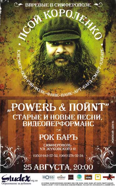 Крымский концерт Псоя Короленко был первым, и благодаря действиям милиции закончился фарсом. Согласно нашему опросу, зрители не жалеют о проведенном времени, полученных впечатлениях и потраченных средствах.