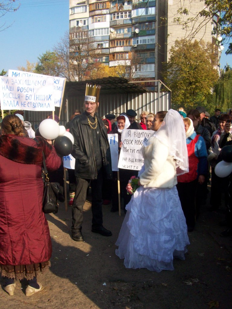 Після прогулянки центром міста весільний кортеж повіз Владу та Кримінала на вул. Мілютенка, де працівники торгівельного майданчика обороняють свої робочі місця від завзятих комунальників з Київ“благо”устрою. Видовище працівникам базару сподобалося, але благословляти такий шлюб вони відмовилися категорично.