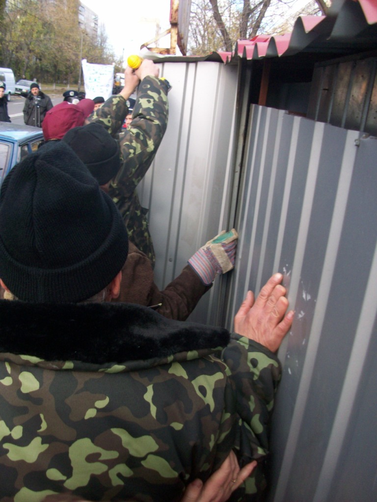 Працівники Київблагоустрою вчинили якусь безглузду спробу пошкодити тильну стінку торгівельного ряду, що прикриває його від дороги. Підприємці цю спробу впевнено зупинили.