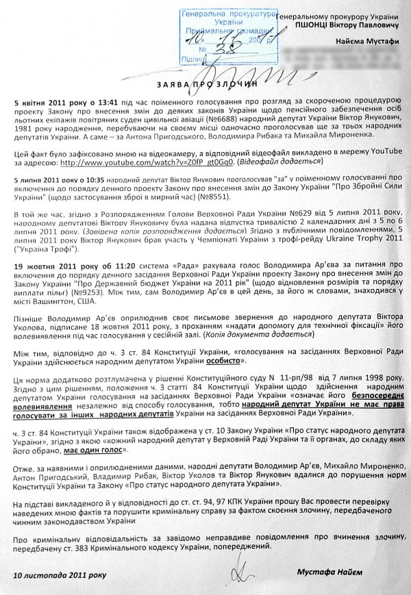 Цього разу відповідну заяву написав журналіст Української Правди Мустафа Найєм.