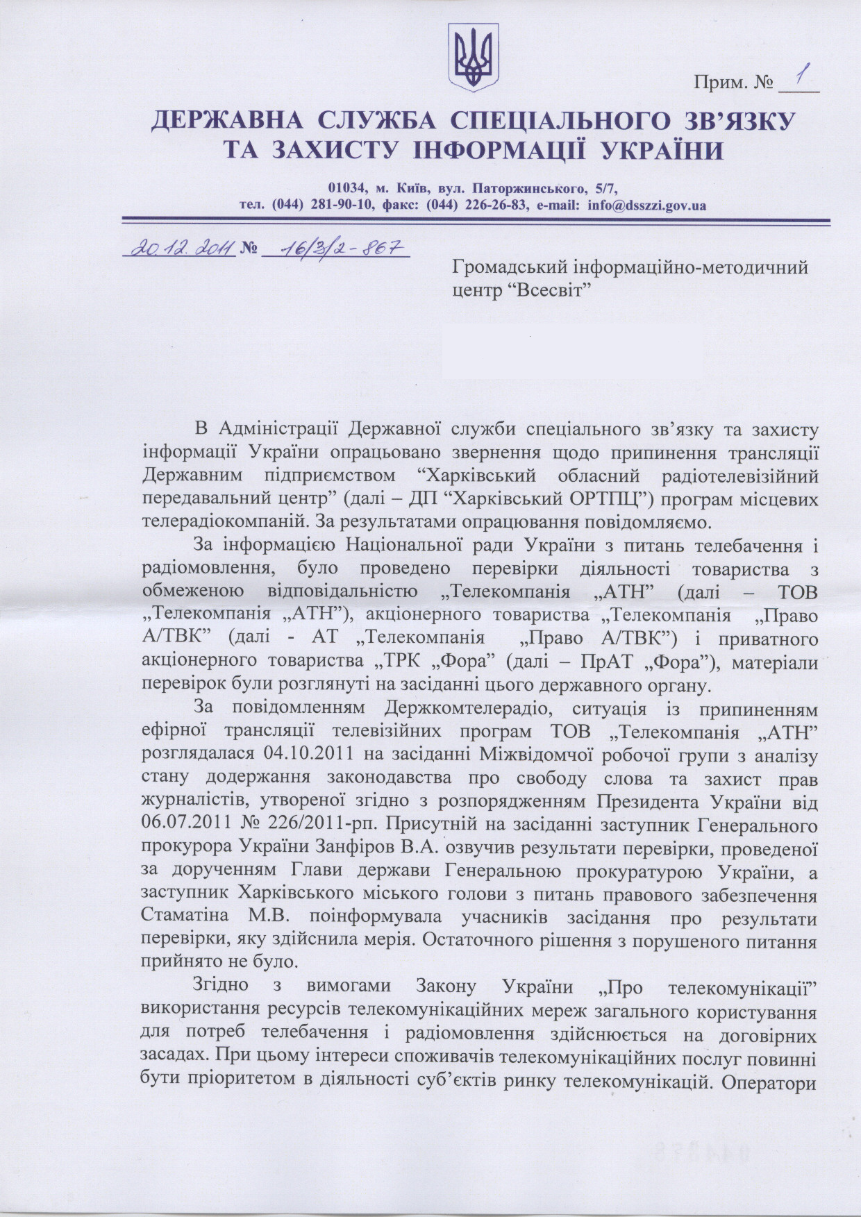 Відповіді влади про відключення харківських телеканалів