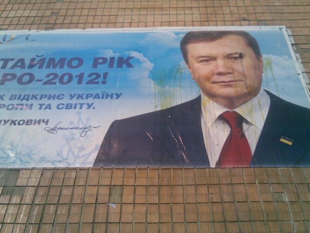 Як відомо, 4 січня цього вперше сталася атака на білборд з привітання В.Януковича. Після цього, подібні акції також провели у Чернігові, Києві, Запоріжжі, Рівненській та Закарпатській областях.