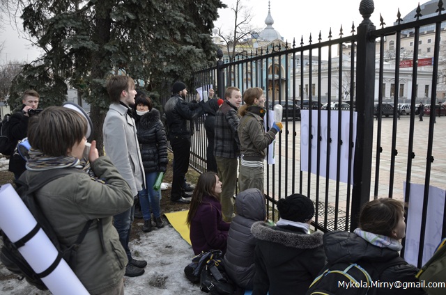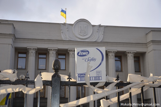 Близько 20 людей оперативно зібралось з акцією протесту біля Верховної ради по тому, як стало відомо про внесення законопроекту в порядок денний парламенту.