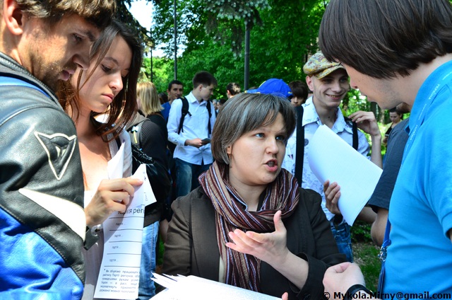 15 травня громадські активісти зібрались біля Верховної ради день по тому, як голова Партії регіонів Олександр ЄФРЄМОВ заявив, що фракція хоче з 15 по 18 травня розглянути проект Закону про засади державної мовної політики. Цей законопроект у співавторстві регіоналів Вадима КОЛЕСНІЧЕНКА та Сергія КІВАЛОВА є братом проекту Закону “Про мови України”. Його автори стверджують, що він базується на Європейській хартії регіональних мов і мов нацменшин, але ініціатива владоможців минулого року була сильно скритикована експертами, громадськими активістами і викликала всеукраїнські акції протесту.