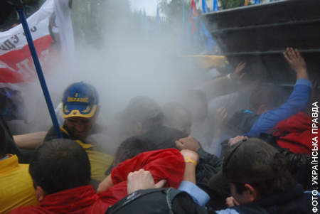 13.23 Журналісту Української правди вдалось зафіксувати, як міліція застосовували сльозогінний газ проти прихильників української мови. Натомість київська міліція цей факт спростовує. “Відділ зв’язків з громадськістю ГУ МВС України в м. Києві спростовує таку інформацію та повідомляє, що під час забезпечення охорони громадського порядку біля ВР України жоден правоохоронець не застосовував проти мітингувальників спеціальних засобів”, – сказано в повідомленні ВЗГ ГУМВС України в м. Києві.