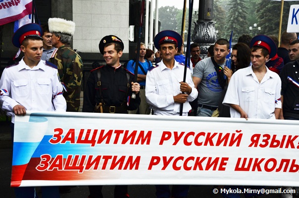 Прихильники законопроекту №9073 протестували під прапорами Партії регіонів і Русского единства.