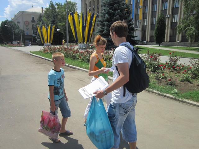 Активісти обклеїли місто російськомовними листівками, в яких немає згадки про мови, натомість містяться факти корупційності та неадекватних рівню життя простих громадян барських замашок родини Клюєвих. Листівки також роздавалися перехожим, які у переважній своїй більшості схвально реагували на них.