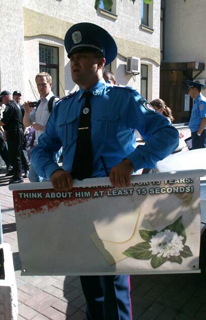 Активисты были остановлены сотрудниками полиции, у них изъяли все информационные материалы, плакаты и пр., а Назара Боярского задержали якобы за нарушение порядка организации публичных мероприятий, хотя уведомление об акции было подано в надлежащий срок и все необходимые формальности были соблюдены.