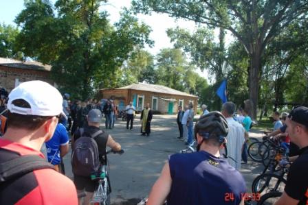 Мы насчитали около 50 велосипедистов, половина которых была из Дружковки, а вторая — примерно поровну делилась между Константиновкой и Краматорском (впервые прибывшим таким составом). А кроме них (и тоже впервые) участвовало 25 байкеров из Дружковки и Краматорска. Причем один из заядлых байкеров, священник Свято-Вознесенской церкви КП о.Игорь, приехав на мотоцикле, облачился затем в ризу и отслужил напутственный молебен.