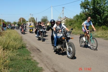 Естественно, байкеры умчались первыми, а велосипедисты растянувшимся пелетоном проехали по центральной улице Алексеево-Дружковки и выскочили на трассу в сторону Дружковки. Яркой колонной они проследовали до поворота на Белокузьминовку, встречая приветливые сигналы проезжавших машин.