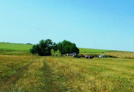 В Белокузьминовке к нам присоединились еще четыре велосипедиста из Краматорска, проследовавшие кратчайшим путем через Семеновку. После короткого привала байкеры с машиной сопровождения направились самостоятельной колонной в Ижевку, а велосипедисты продолжили свой нелегкий путь со спусками и подъемами.
