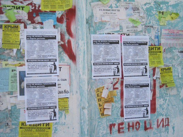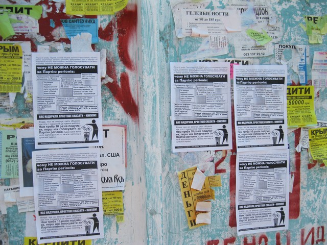 В суботу та неділю в Черкасах активісти кампанії “Помста за розкол країни” повторно поширювали інформацію проти Партії регіонів та Богдана Губського – чинного народного депутата, який голосував разом з провладною більшістю за законопроект “Про засади державної мовної політики” і який булотується в одномандатному мажоритарному окрузі №197 до Верходної Ради наступного скликання.