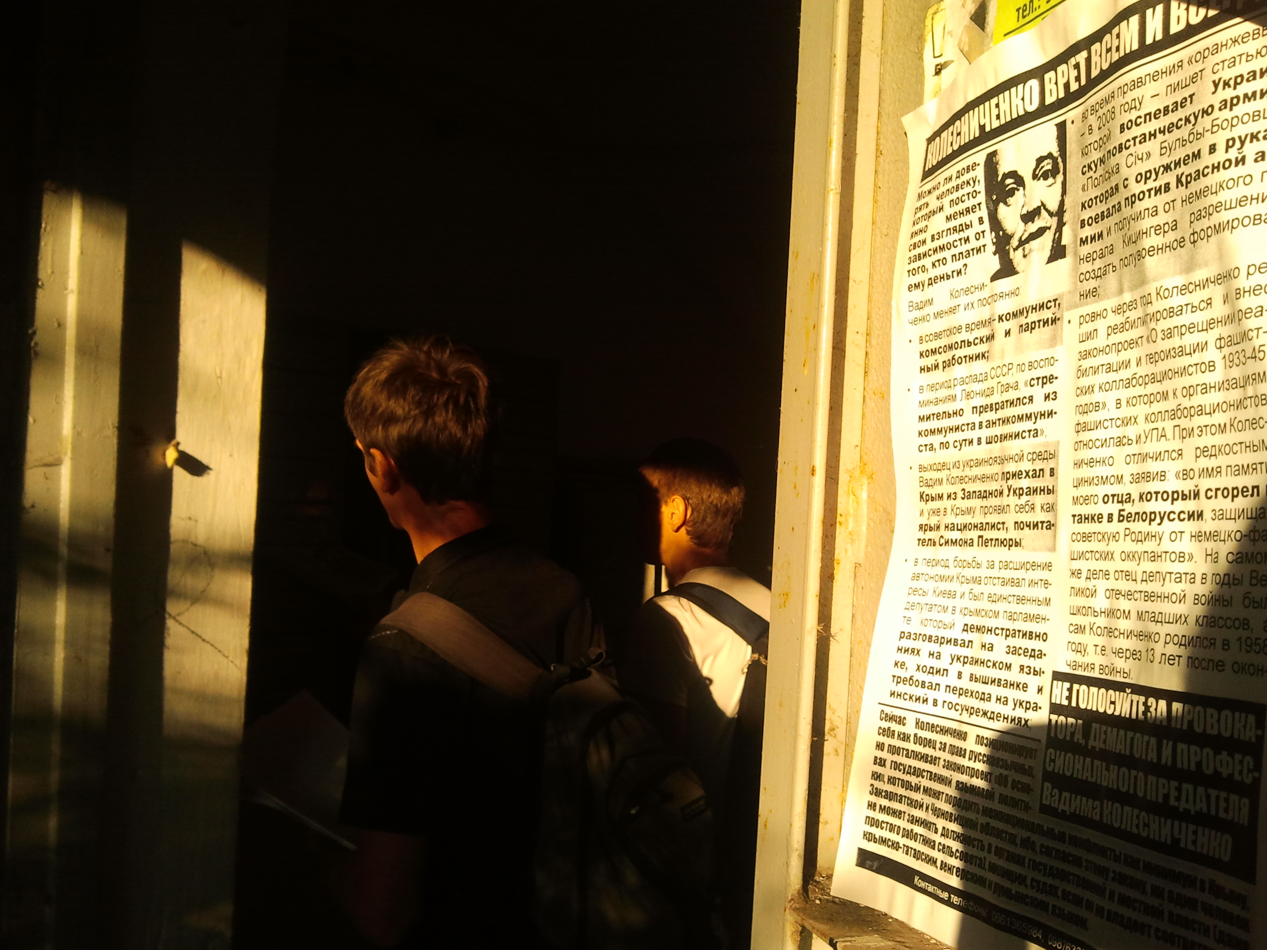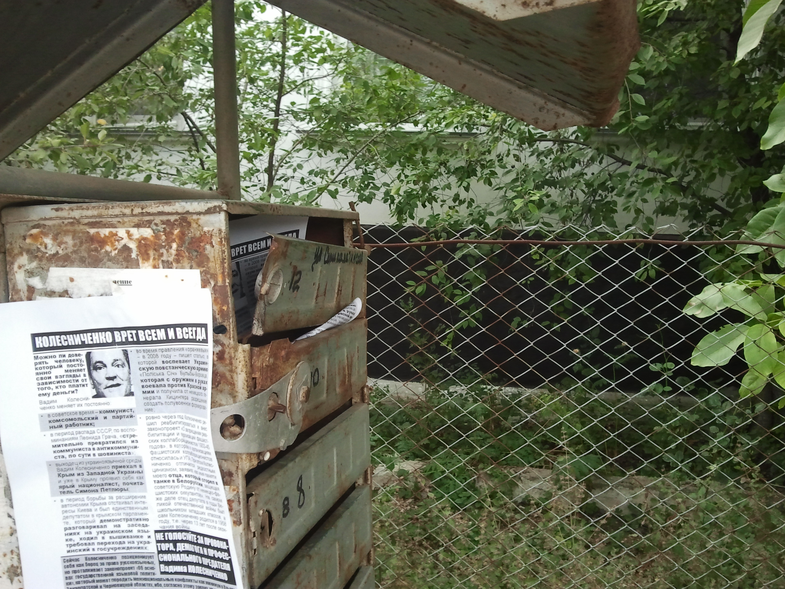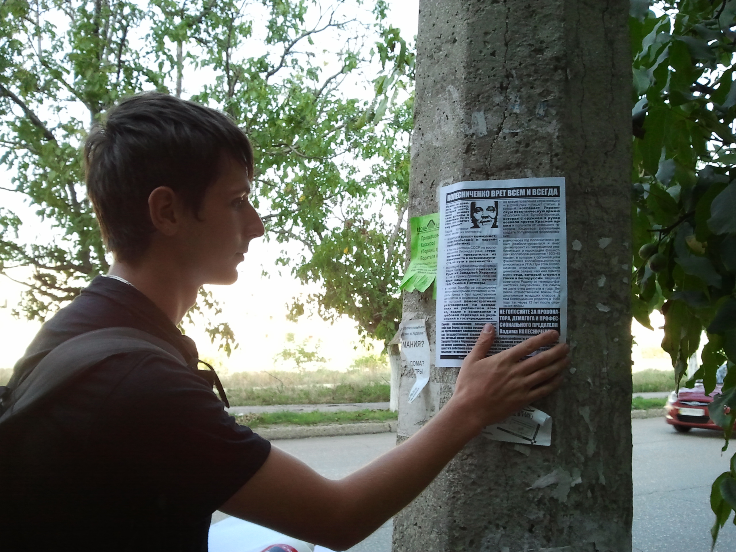 Активісти кампанії “Помста за розкол країни” продовжують поширення листівок в Криму. Незважаючи на те, що нещодавно влада вже намагалась не допустити поширення в Севастополі інформаційних листівок про Партію регіонів та Вадима Колесніченка – активістів кампанії забирала до відділку міліція, судом було винесено рішення про стягнення з молодих людей штрафу в розмірі 51 грн., також активістів намагались впіймати та доставити до суду за образу честі й гідності народного депутата – проведення роз’яснювальної роботи серед місцевого населення відбувається і далі.