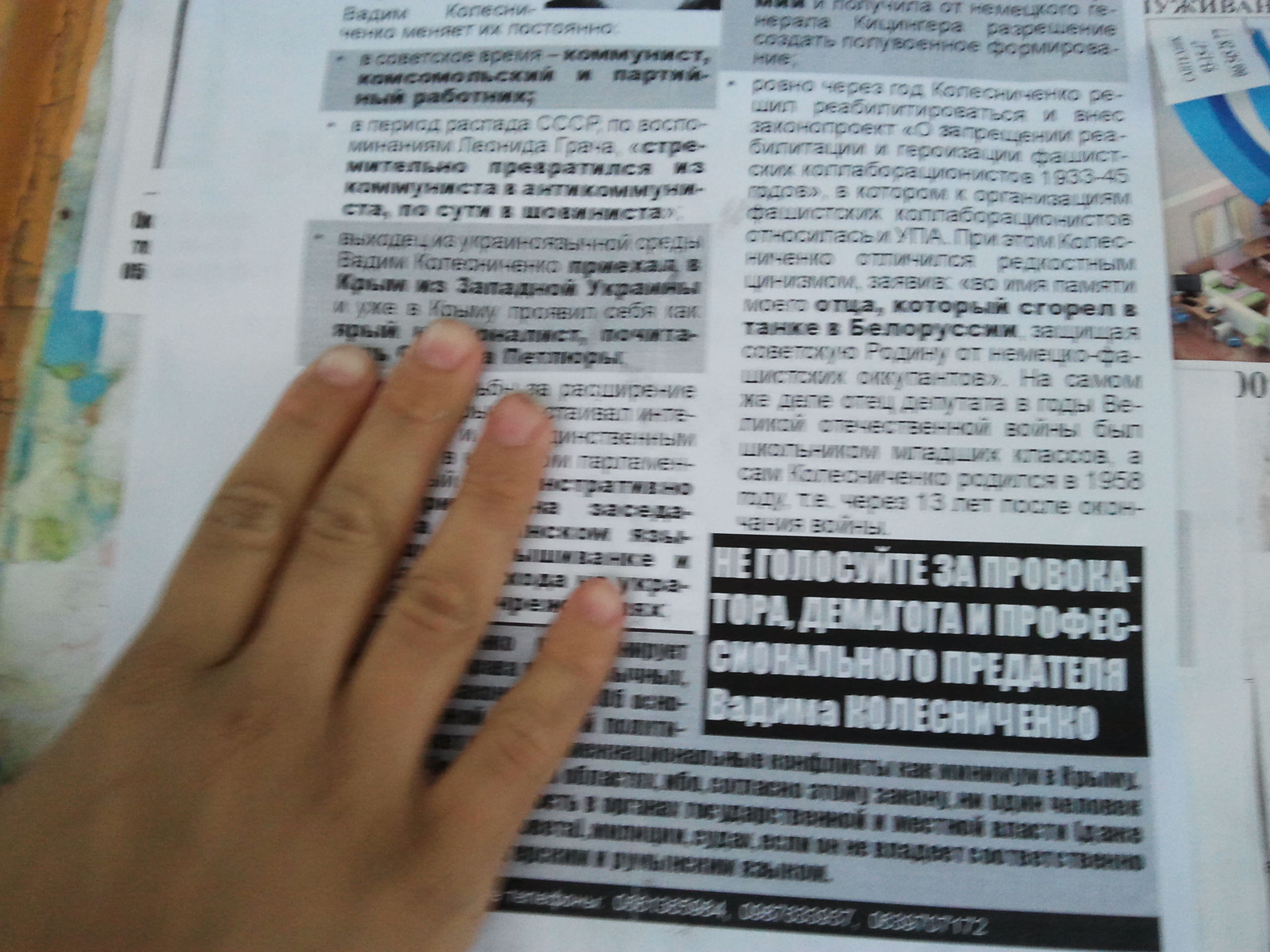 Вчора в місті повторно поширювали листівки із закликом не голосувати за кандидата від Партії регіонів по одномандатному мажоритарному округу №225 – чинного нардепа Вадима Колесніченка – автора закону “Про засади державної мовної політики”.