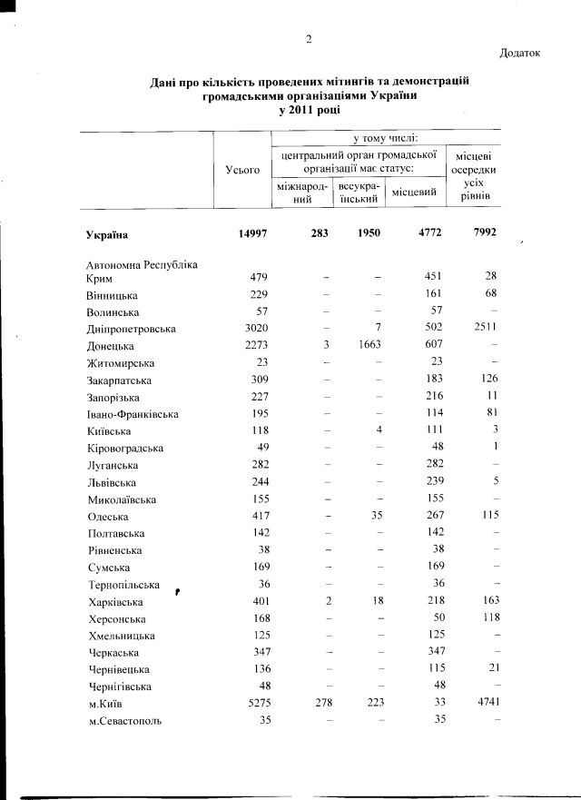 Про це свідчить відповідь (лист №15/1-20/1405 ПІ) Державної служби статистики України на інформаційний запит “Майдан-Моніторингу” щодо статистичних даних стосовно реалізації громадянами конституційного права на мирні зібрання.