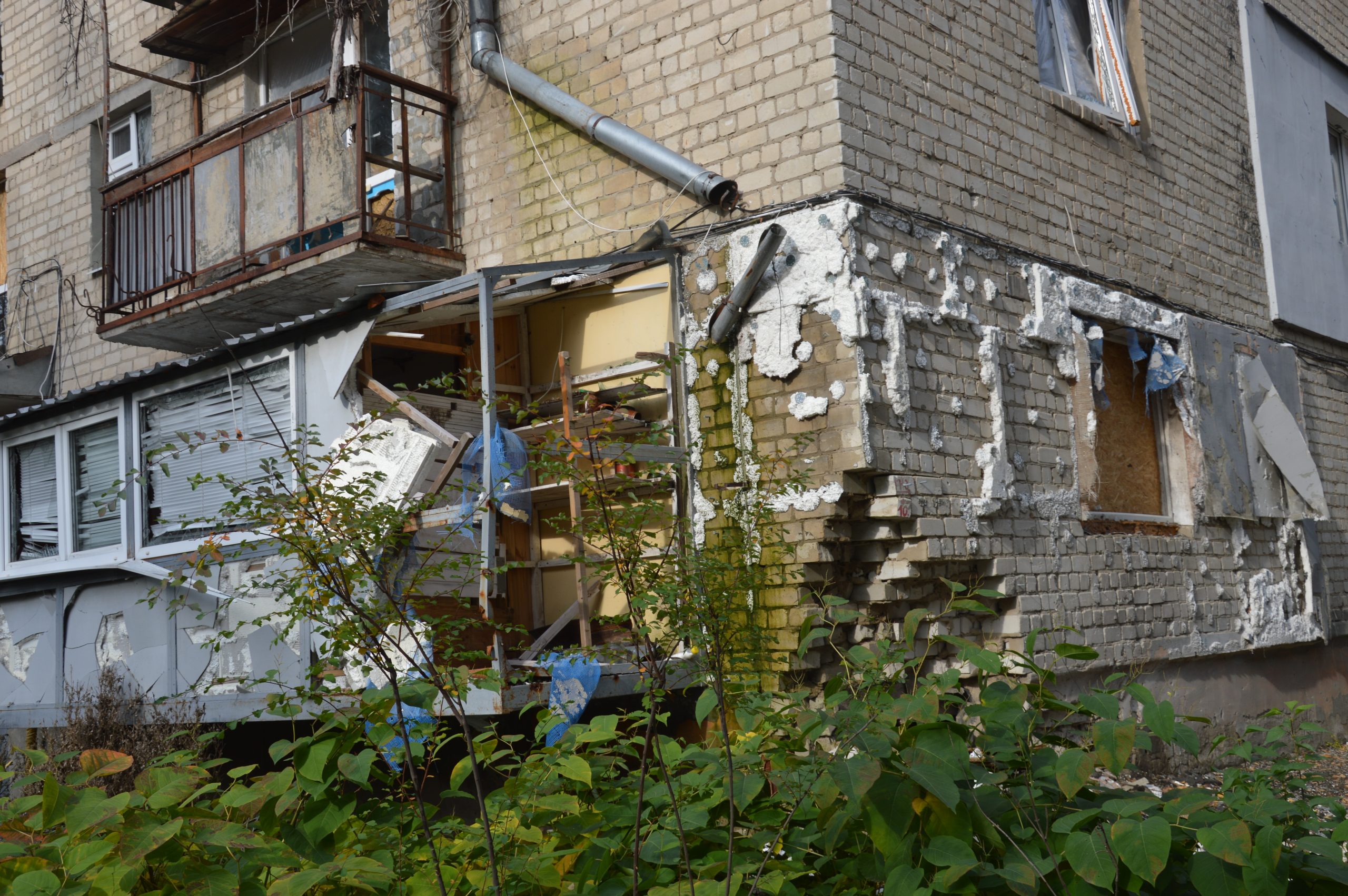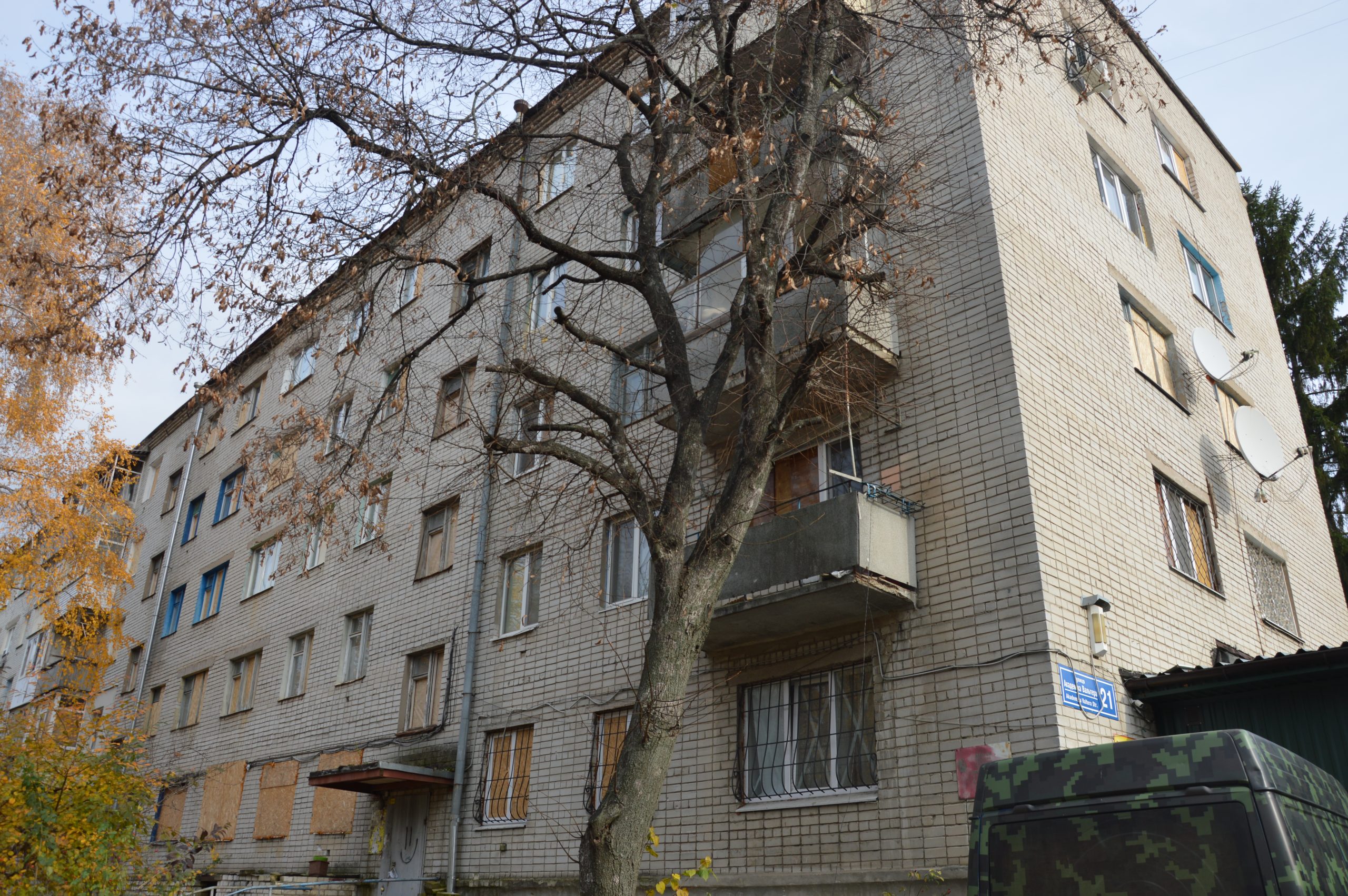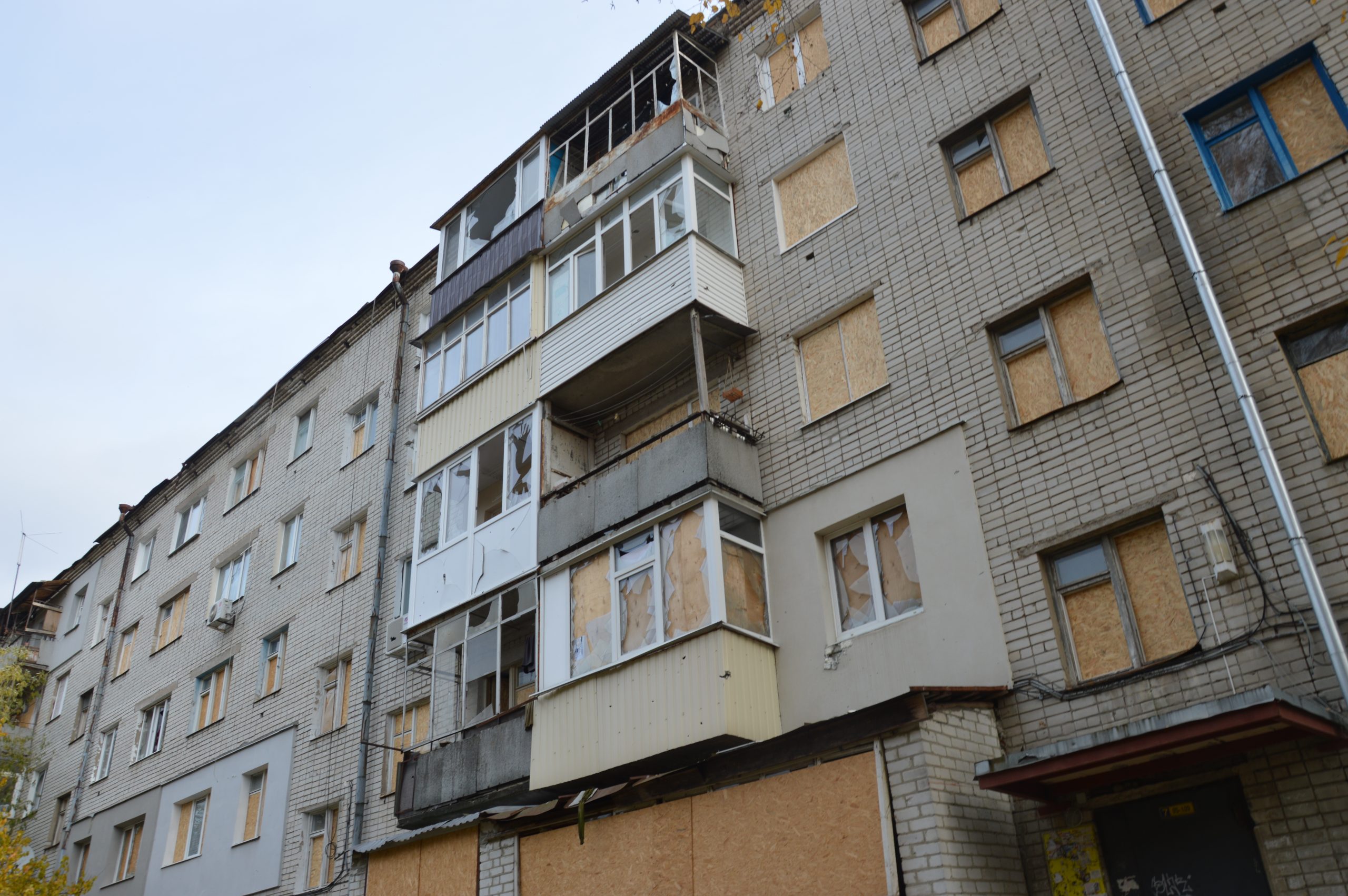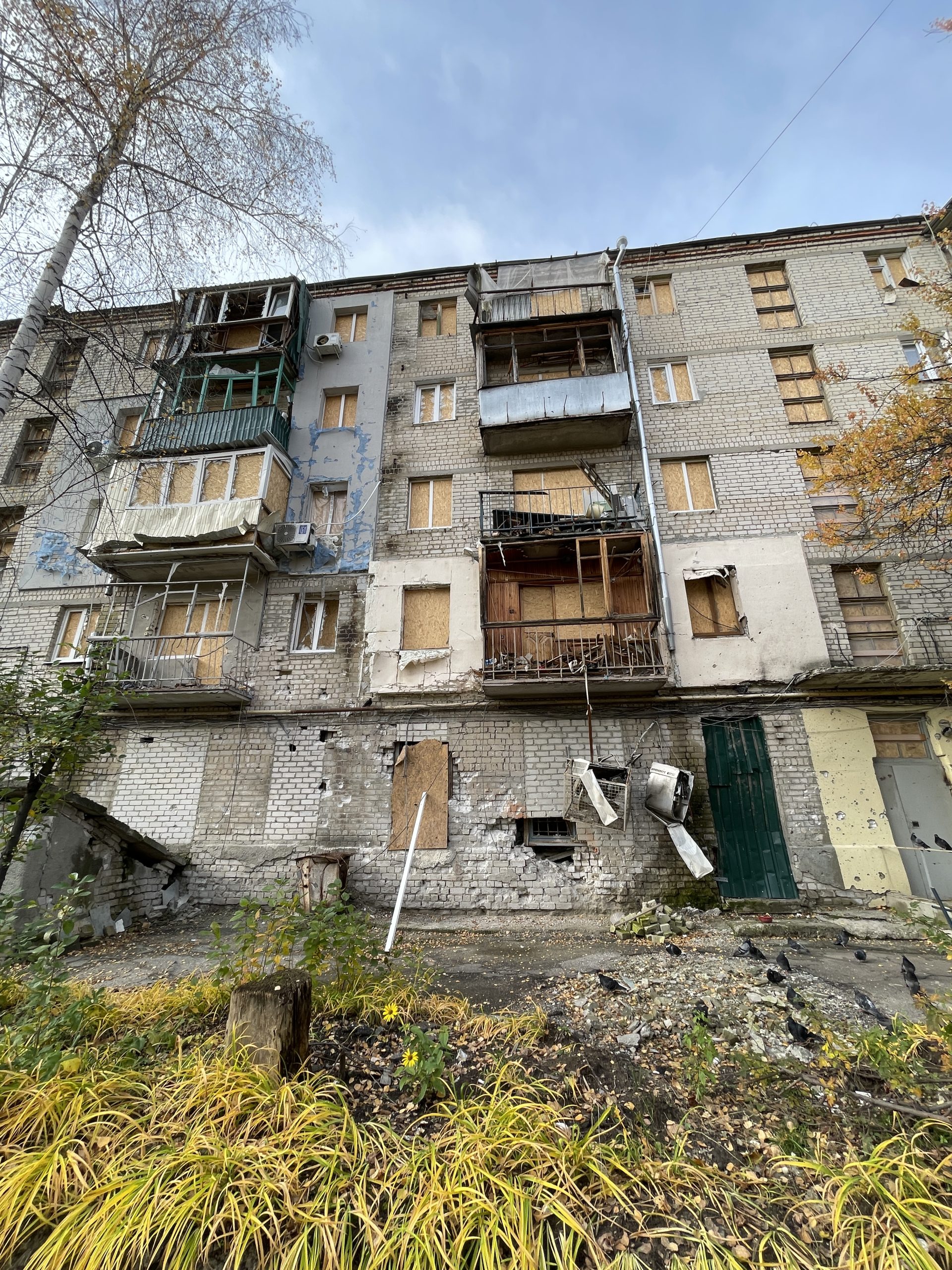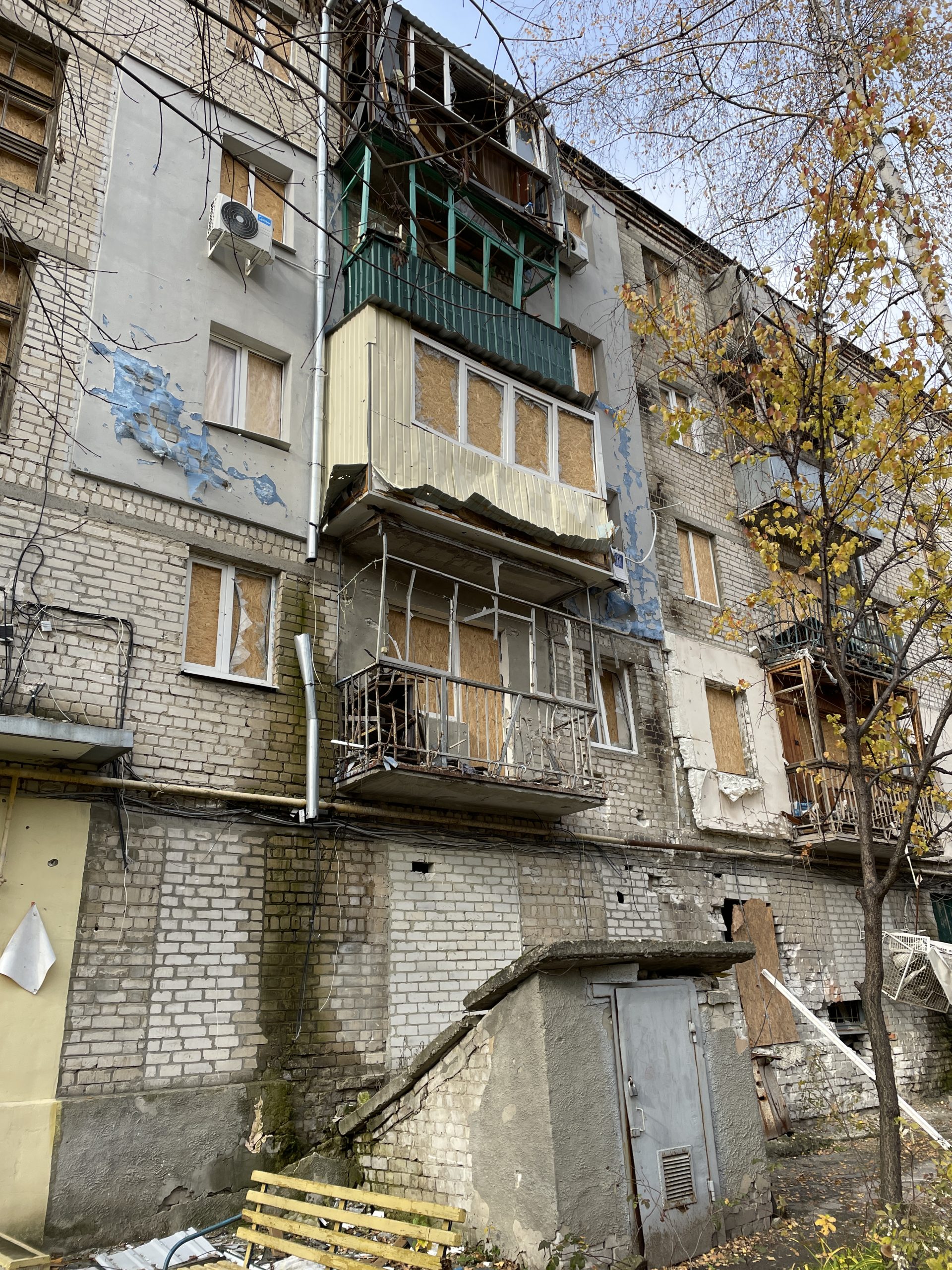 Зовні може здатися, що будинок цілий, просто вікон немає. Але насправді він має великі діри в даху та зруйновані квартири на верхніх поверхах. У цьому будинку мешканці не зможуть перезимувати через прорвані труби опалення. Влітку та восени вода текла і затоплювала квартири, які не встигали просихати.