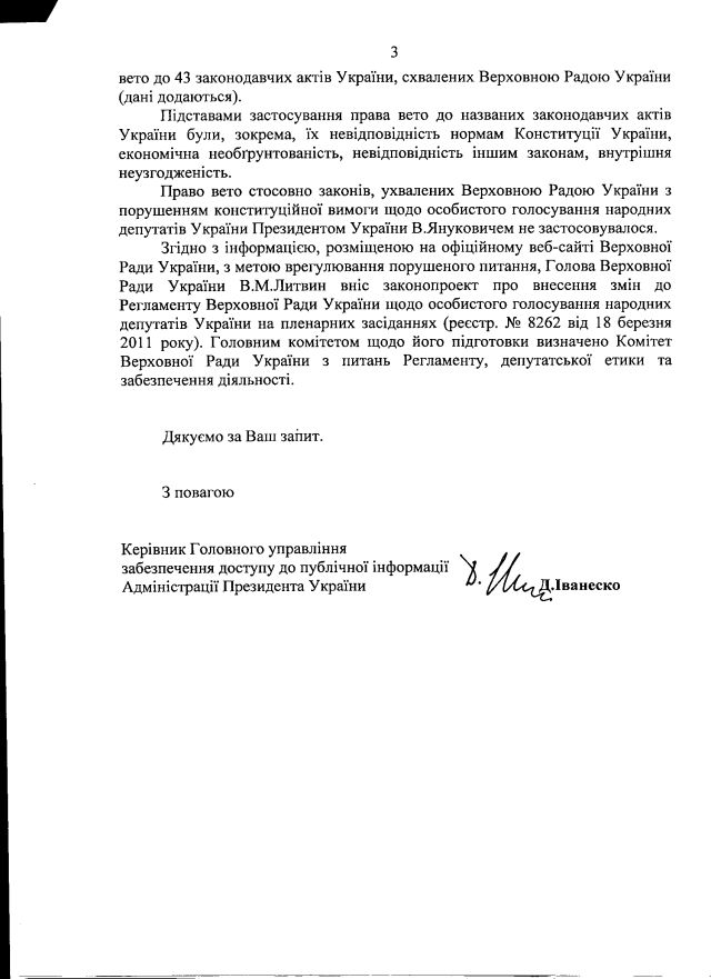 4. Вето на підставі порушення норм особистого голосування презижент не накладав