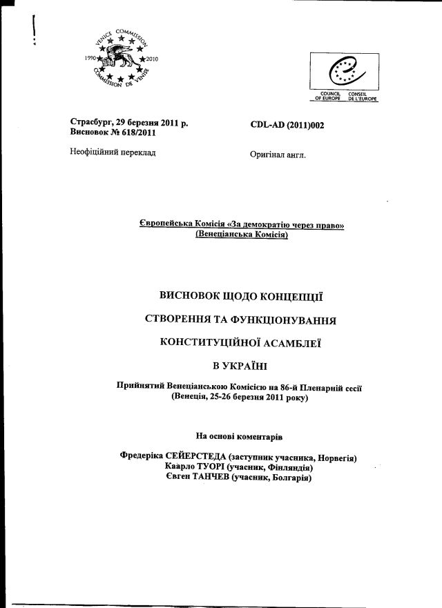 5Вона ж – Європейська Комісія “За демократію через право”, під омофором Ради Європи