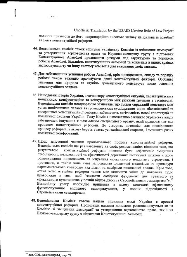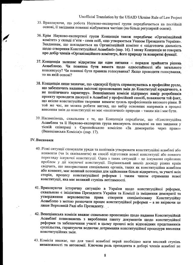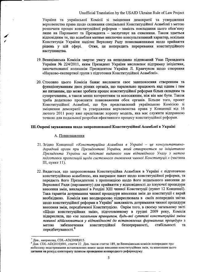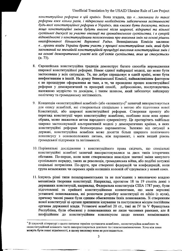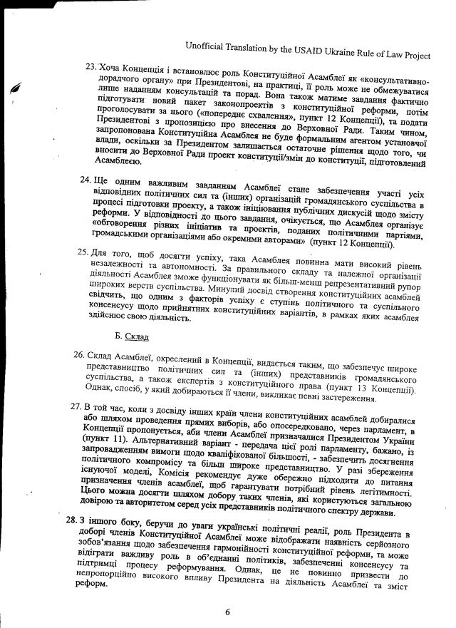 Попри певні “технічні складнощі”3, вдалося отримати не лише проект Концепції створення та функціонування Конституційної Асамблеї, підготовлений “конкуруючою” групою розробників – Комісією зі зміцнення демократії та утвердження верховенства права4, але і висновок Венеціанської комісії5 щодо цього проекту