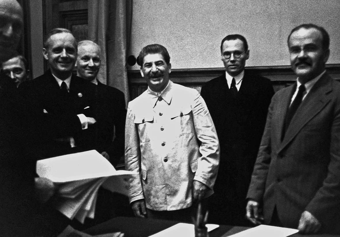 19 серпня 1939 р. вони завершились підписанням угоди, вигідної для обох сторін. Керуючись вказівкою товариша Сталіна про необхідність проводити політику миру, Радянський Уряд пішов назустріч бажанню, висловленому Німеччиною. В результаті переговорів, які мали місце в Москві між німецьким міністром закордонних справ Ріббентропом і товаришем Молотовим при участі товариша Сталіна, 23 серпня 1939 р. був підписаний договір про ненапад між СРСР і Німеччиною (сумнозвісний пакт Молотова-Ріббентропа – В.Ш.). Цей договір знаменував собою кінець ворожнечі обох країн, яка штучно викликалась стараннями англо-французьких імперіалістів… 28 вересня 1939 р., в результаті переговорів між товаришем Молотовим і Ріббентропом при участі товариша Сталіна, був підписаний в Москві радянсько-німецький договір про дружбу і кордон між СРСР і Німеччиною… Угоди, підписані СРСР і Німеччиною в 1939 р., не тільки знаменують собою рішучий поворот в радянсько-німецьких взаємовідносинах. Вони є між народ­ною подією величезного історичного значення”.