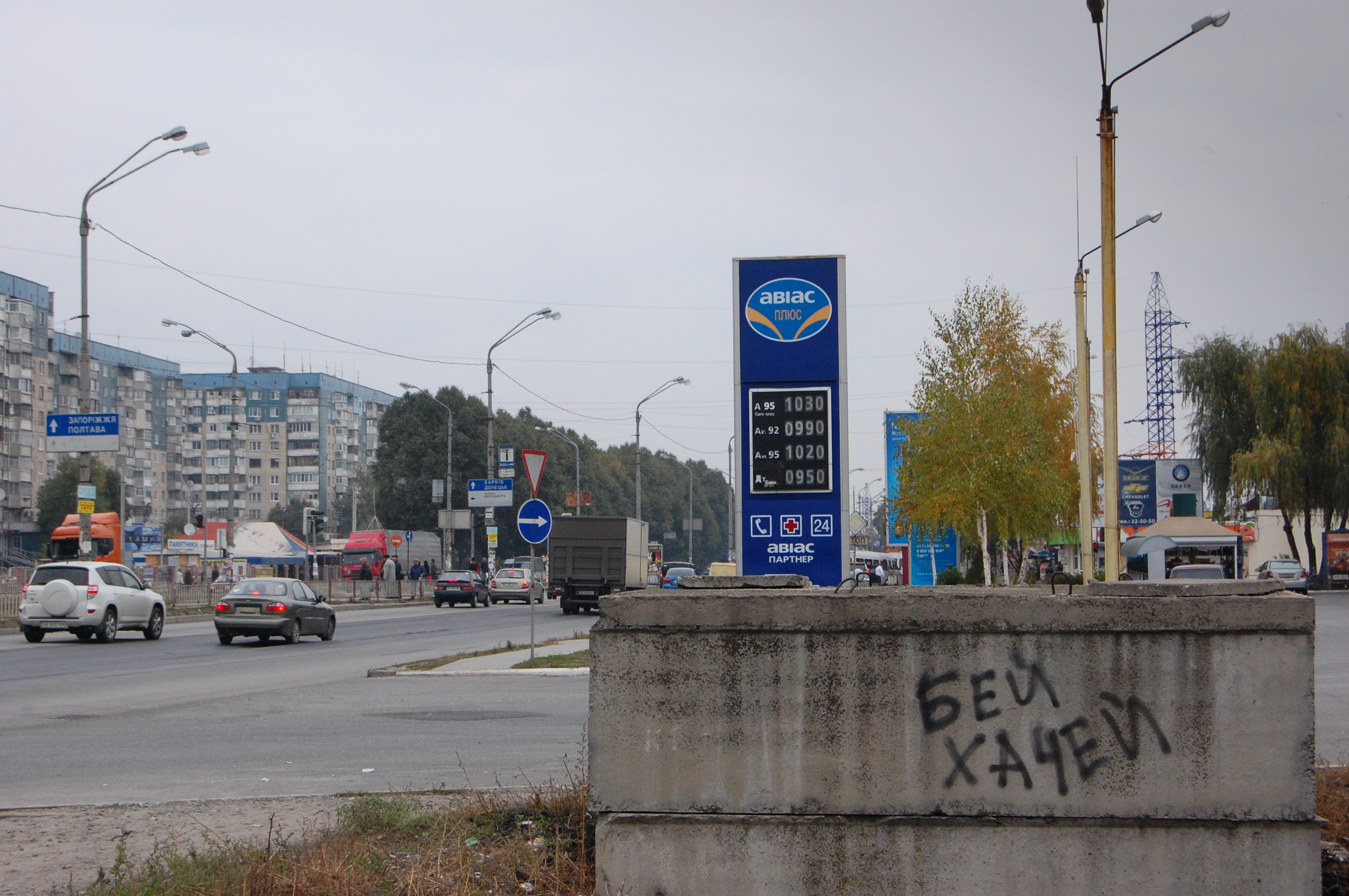 Якщо уважно придивитись, ці написи зроблені поверх написів фанатів клубу Дніпро FCDD , те що це вздовж Донецького шосе