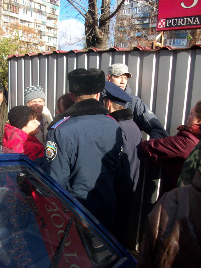 Працівники Київблагоустрою вчинили якусь безглузду спробу пошкодити тильну стінку торгівельного ряду, що прикриває його від дороги. Підприємці цю спробу впевнено зупинили.