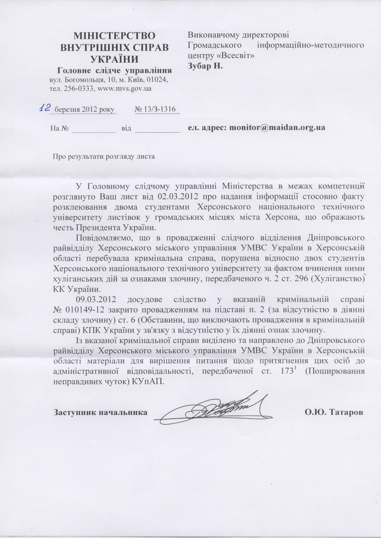 Потім під тиском громадян Справу проти херсонських студентів закрили