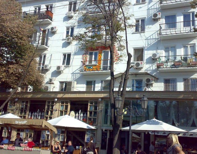 Живе в Одесі на вулиці Дерибасівській креативна дівчина-художниця, що розписала візерунками свій балкон та надписала його «Слава Україні!»
