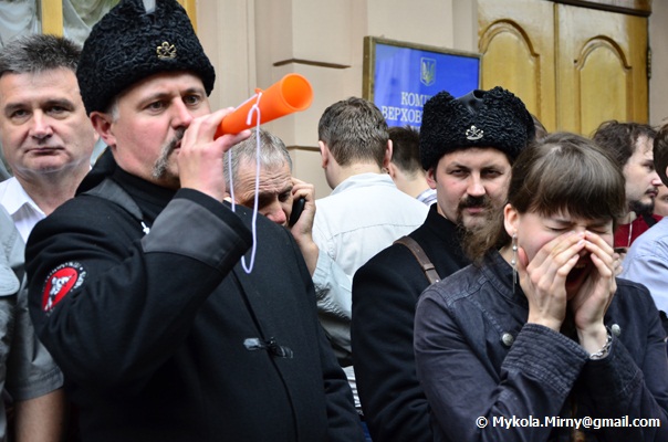 Під парламентом утворилися також партійні мітинги. Під парканом Верховної ради протестувала ВО “Свобода”, а поряд з громадськими активістами, які закликали приходити на протест без партійної символіки, стояли прихильники БЮТ-Батьківщина.