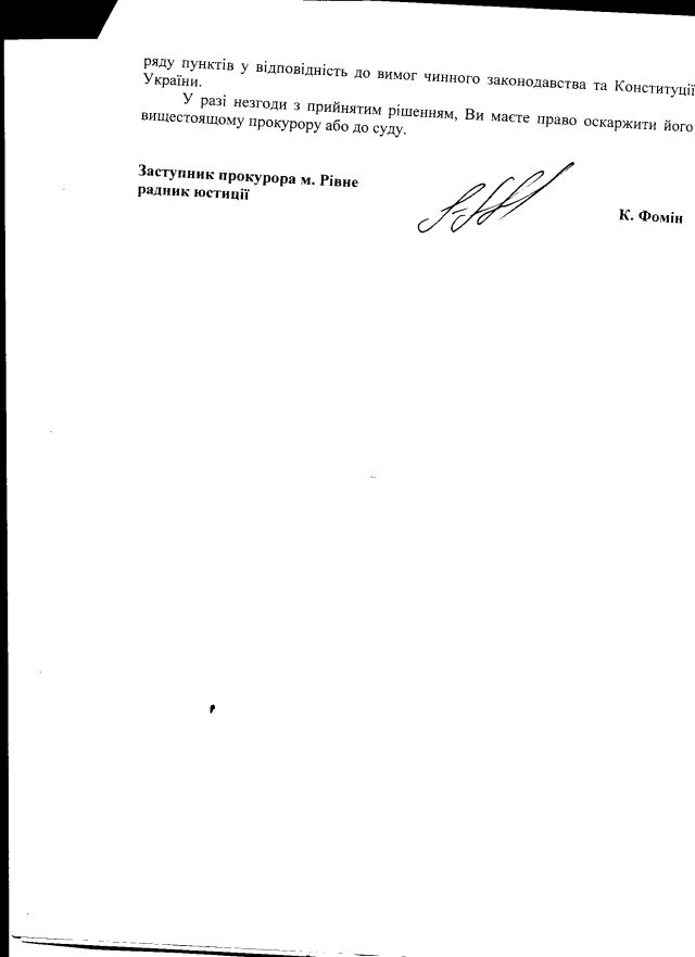 Раніше отримана на відповідне звернення відповідь прокуратури Житомира – тут