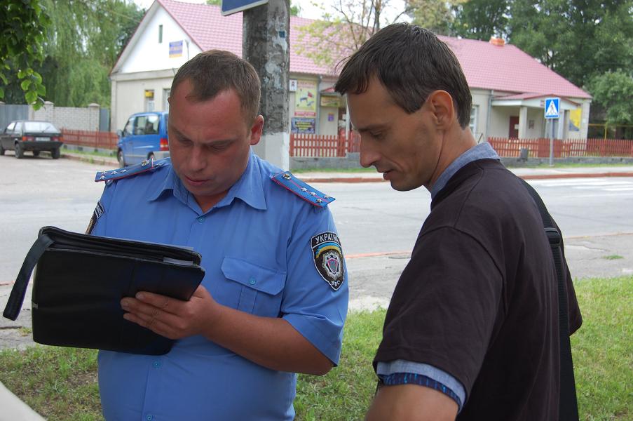 Після цього селищний голова викликав міліцію й до її приїзду слідкував за активістами, супроводжуючи їх на автомобілі. Прибулі на місце подій міліціонери на чолі з начальником міліції запросили активістів пройти до райвідділу для дачі пояснень, однак ті відмовились, вимагаючи або затримати їх, висунувши для цього законні обвинувачення, або відібрати пояснення на місці. Мабуть, через присутність журналістів, міліція погодилась з прочитаною їй активістами лекції з політичного лікнепу, і до відділку ніхто не пішов. Після формального оформлення дачі пояснень (активісти скористалися своїм конституційним правом не свідчити проти себе), інформування населення про особу Олега Черпіцького продовжилось.