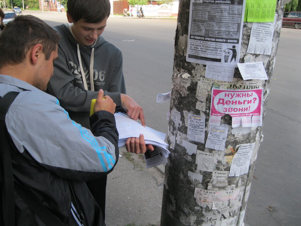 У відповідь на дії влади, яка з метою запобігання поширенню в Житомирі критичної інформації про Партію регіонів та її кандидатів, здійснюює в місті “інформаційні зачистки”, житомиряни знову поширювали антивладні листівки.