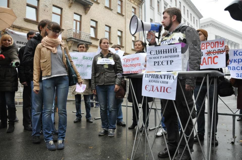 23 жовтня біля Адміністрації Президента України відбулася громадська акція протесту проти нового закону про паспорти під назвою «Грандіозна паспортна афера – 46 мільйонів обманутих».