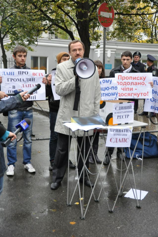 Учасники акції передали Президенту звернення з вимогою ветувати закон про паспорти і єдиний демографічний реєстр, які підтримали більше 50 громадських організацій.