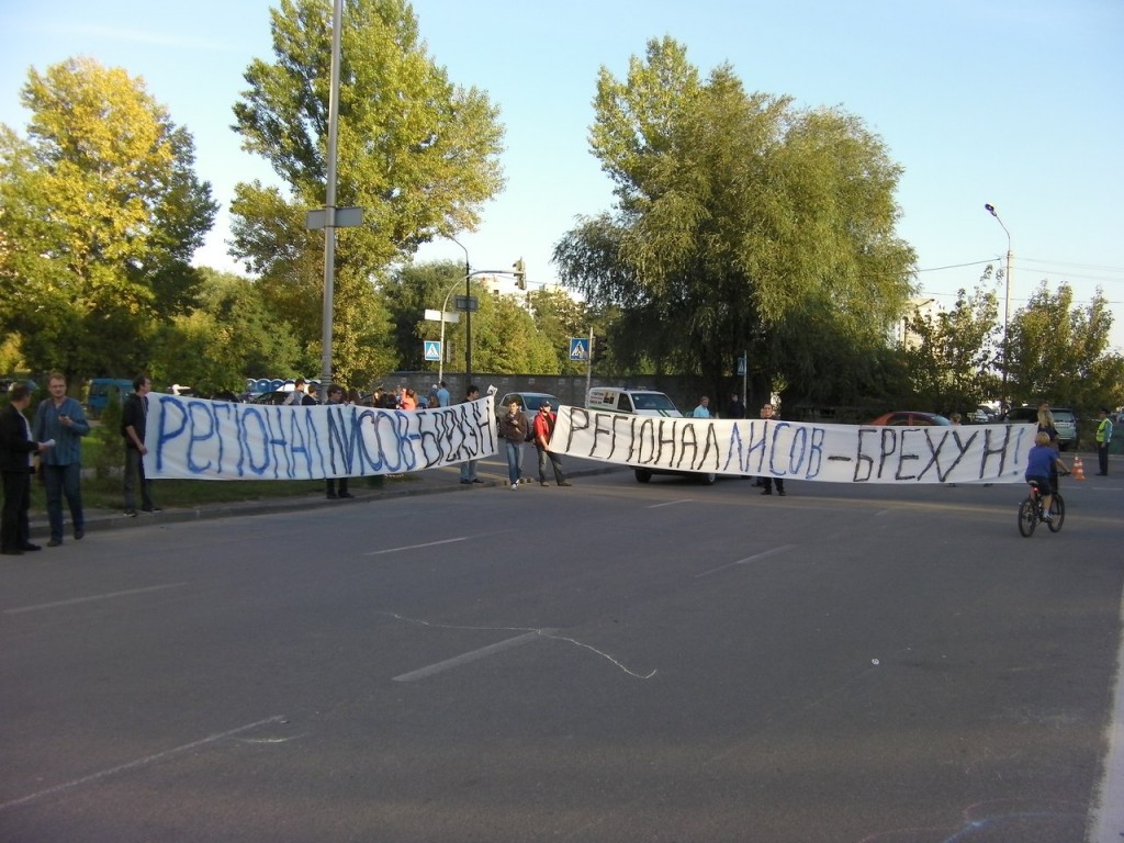 Так як в міліції не знайшлось законних підстав припинити нашу акцію, то як по команді вони всі зникли, і одразу після цього на нас напали бритоголові «бики» Лисова, які почали відбирати листівки, псувати банери, наші особисті речі і одяг. Особисто мені порвали сорочку, а одному з наших активістів розбили годинник.