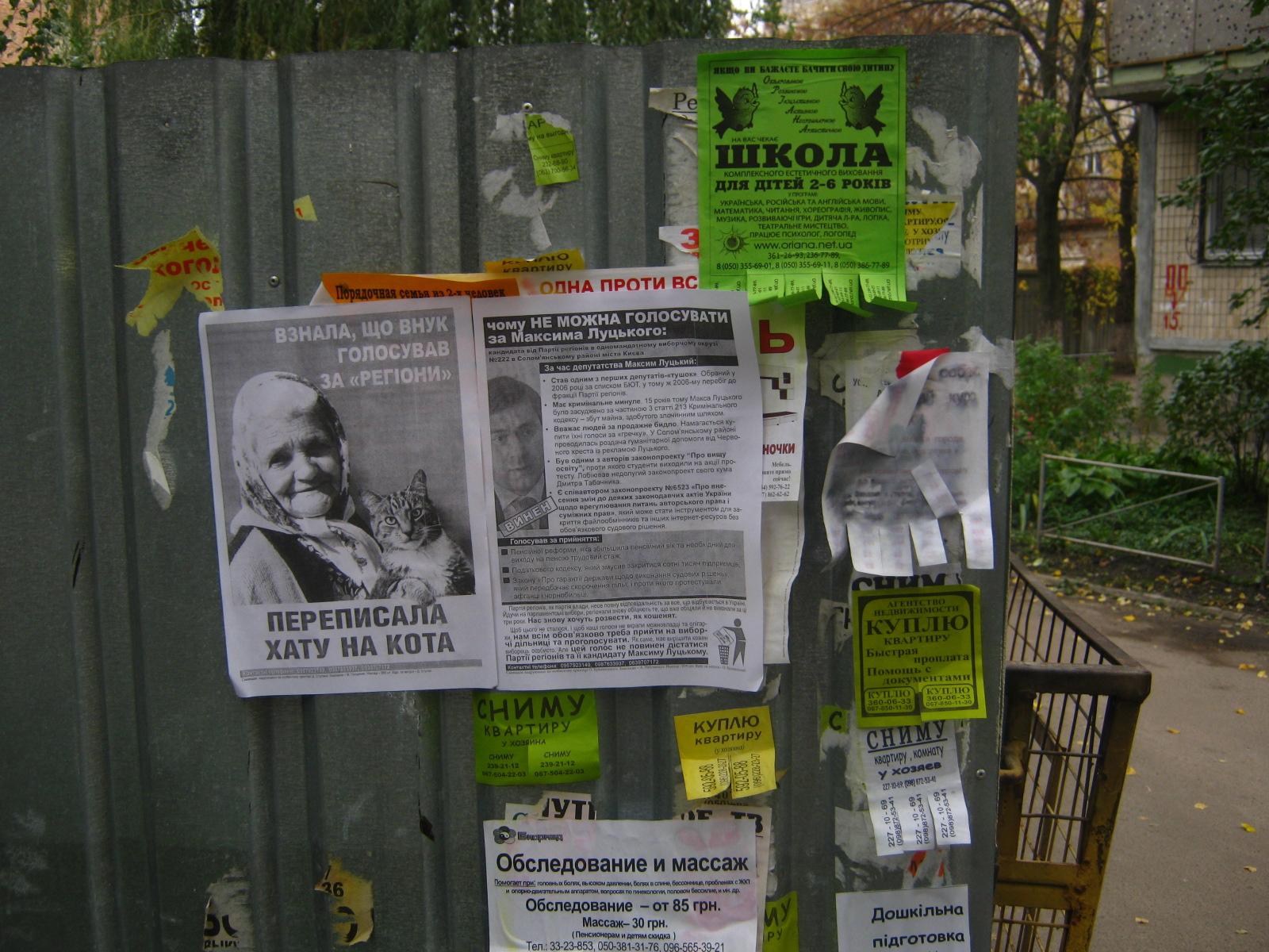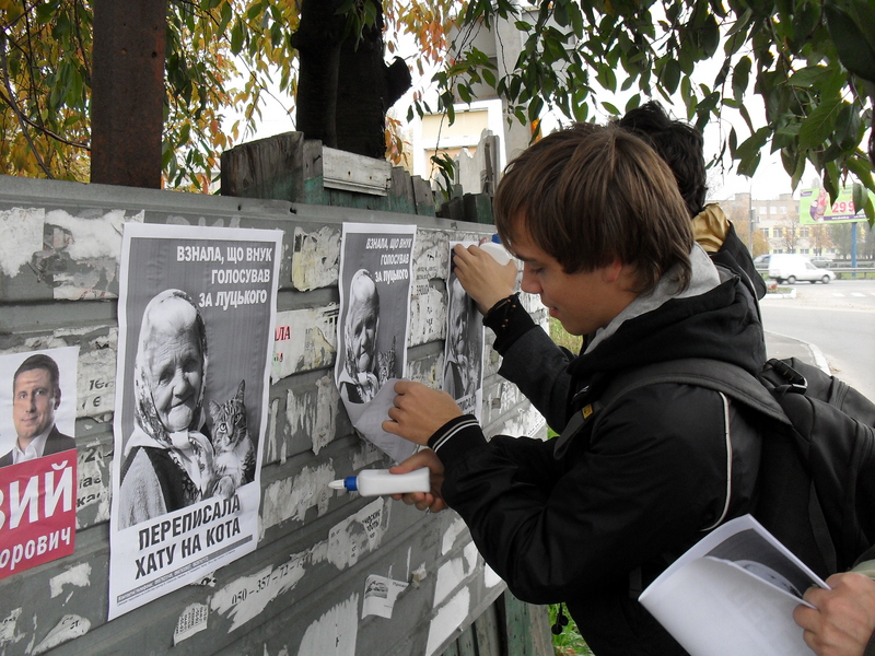 Не зважаючи на всі намагання міліції та “невідомих” перешкодити роздачі листівок із закликами не голосувати за Партію регіонів та її кандидатів, у трьох виборчих округах столиці активісти кампанії “Помста за розкол країни” поширили чимало листівок проти Максима Луцького, Валерія Борисова, Ігоря Лисова та їх партії. Активісти стверджують, що багато виборців лише від них дізнаються про “регіональне” походження цих кандидатів, оскільки вони не дуже охоче афішують свою партійну приналежність в своїй агітаційній продукції.