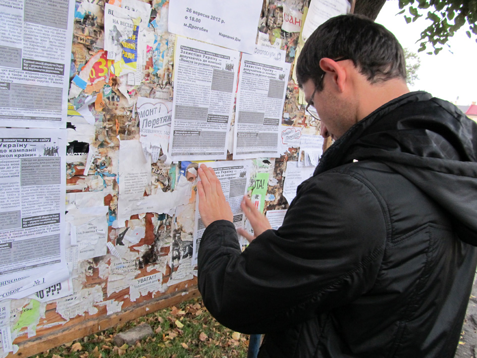 Традиційні листівки з закликом долучатись до кампанії “Помста за розкол країни” розповсюдили активісти Дрогобича, закликавши виборців не віддавати жодного голосу Партії регіонів, її кандидатам та союзникам на виборах до Верховної Ради, як винуватцям прийняття закону “Про засади державної мовної політки” Ківалова і Колесніченка.