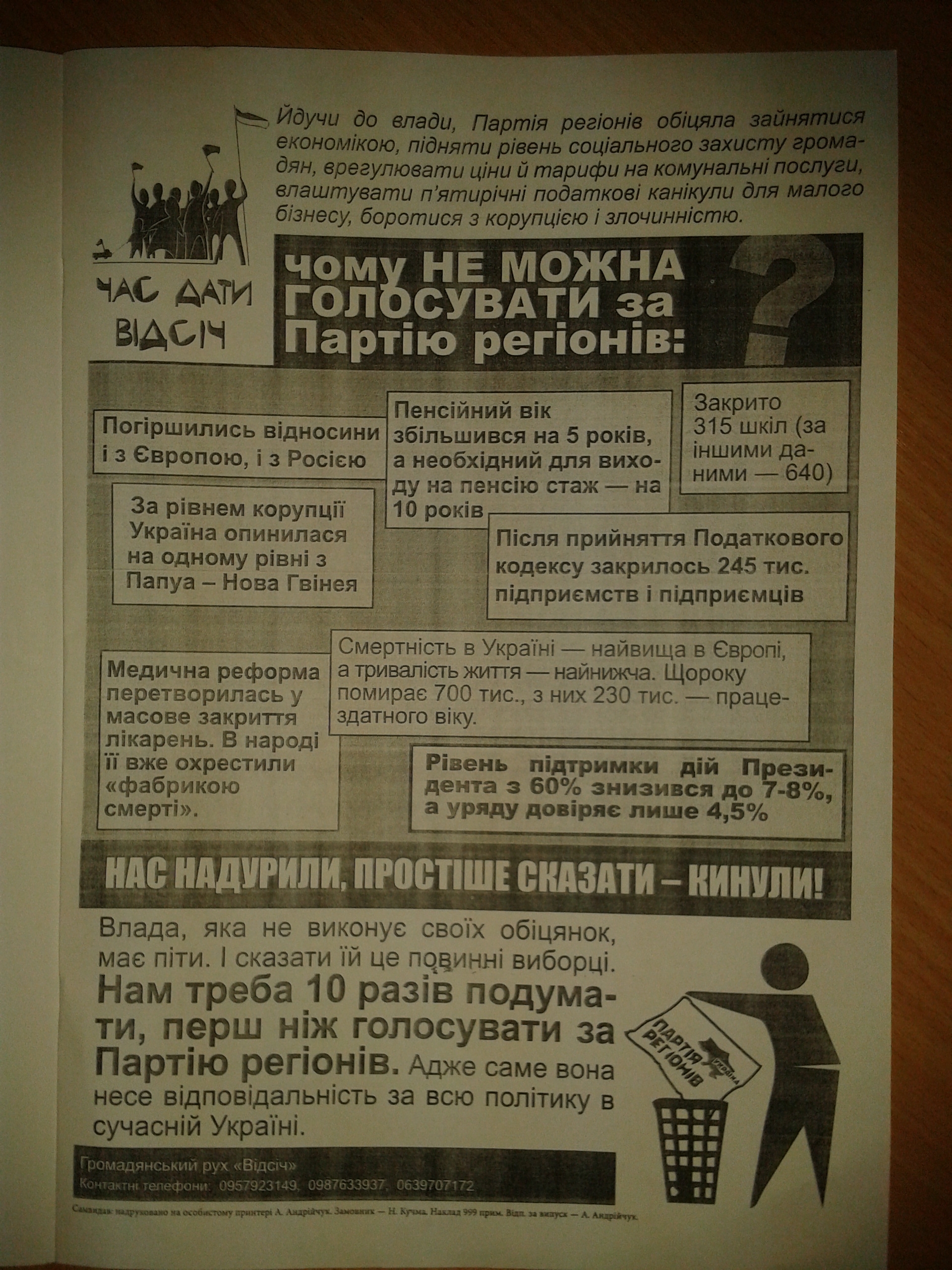Найцікавіше, що Катерина Чепура листівок не поширювала (в протоколі вказано, що листівки в неї не вилучалася), а була присутня на місці подій як журналіст. А після затримання міліцією активісти “Відсічі”, реалізуючи надані їм законодавством права поширювати інформацію й агітувати як за, так і проти, ось вже майже місяць поширюють такі самі листівки, і міліція не має до них жодних претензій.
