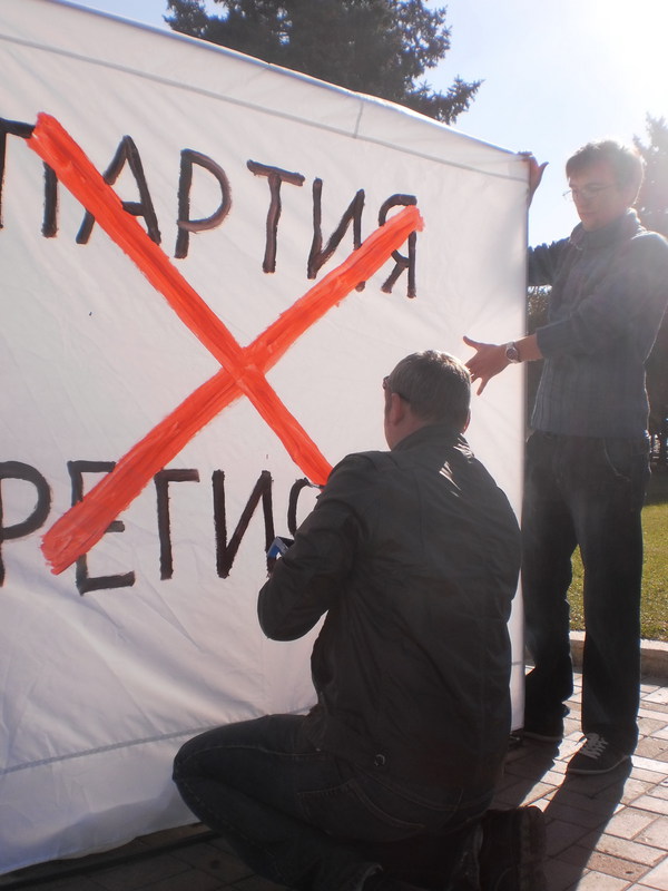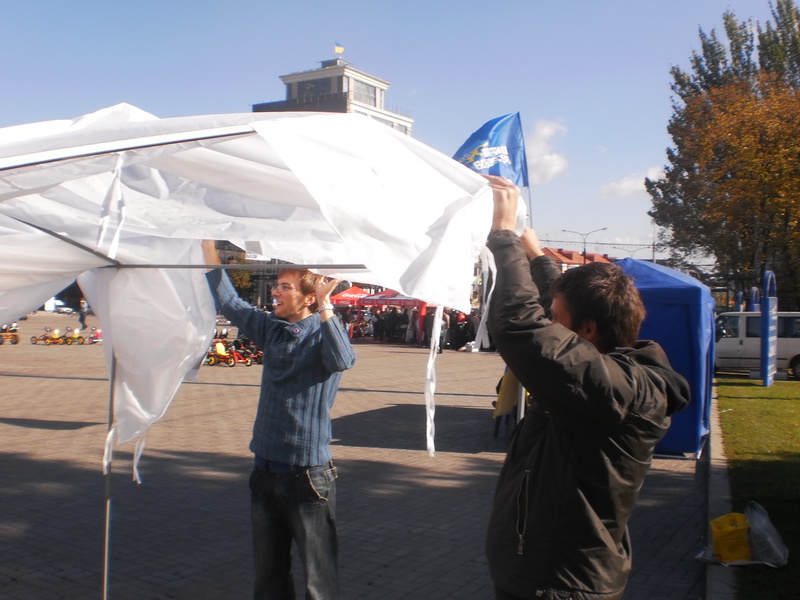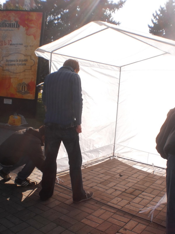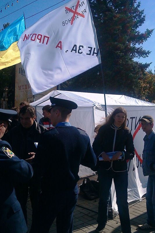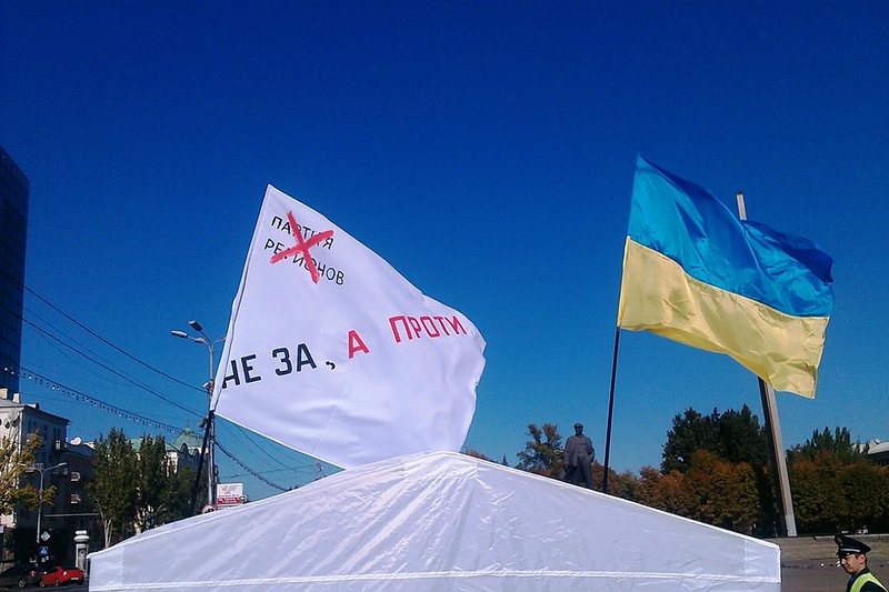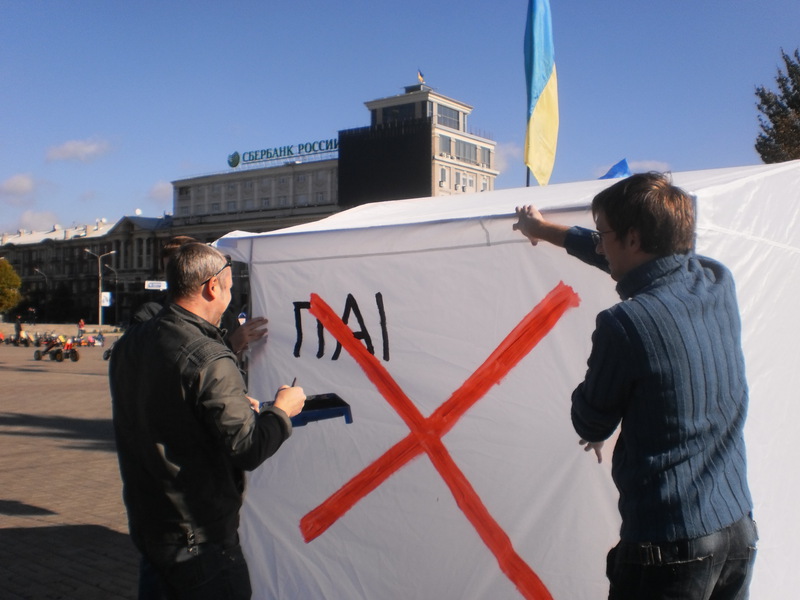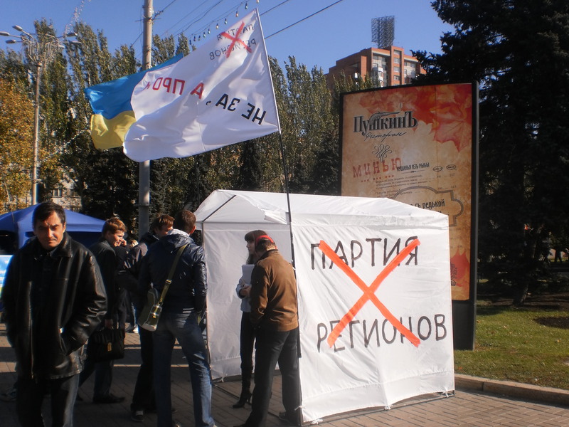 Первые две такие палатки появились в Киеве. Третья – в Донецке. В субботу 13 октября на площади Ленина активисты агитировали не голосовать за Партию регионов и её кандидата в 42-ом избирательном округе Татьяну Бахтееву.