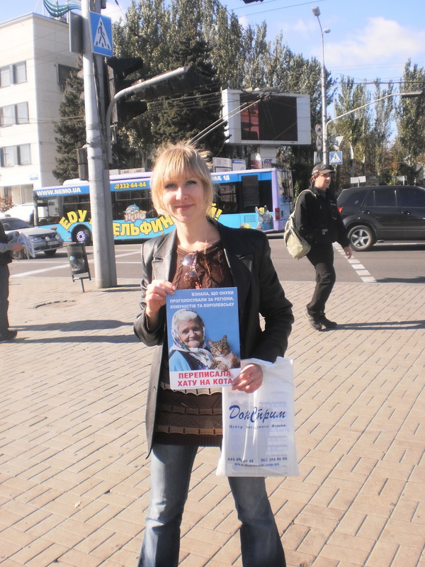 Это вызвало нервную реакцию регионалов. Сначала они пробовали интеллигентно дискутировать на украинском языке, но потом от отчаянья прибегли к неадекватным действиям. Неуравновешенная поклонница Бахтеевой ворвалась в палатку кампании и начала рвать листовки, которые там находились. Милиция же спокойно наблюдала за этим со стороны. Утихомирив истеричную регионалку, активисты продолжили раздачу листовок, которая проводилась не только возле антиагитационной палатки, но и во всем Ворошиловском районе Донецка (в субботу и воскресенье), где баллотируется Татьяна Бахтеева.