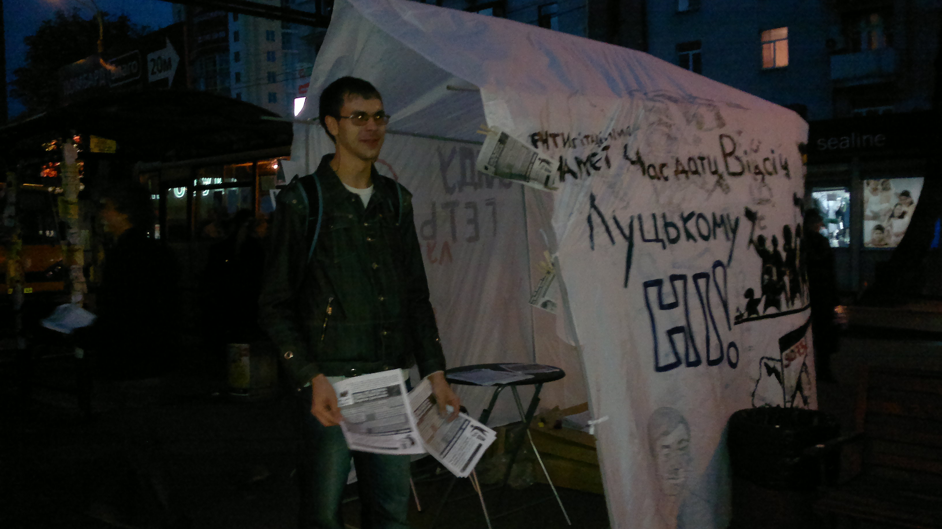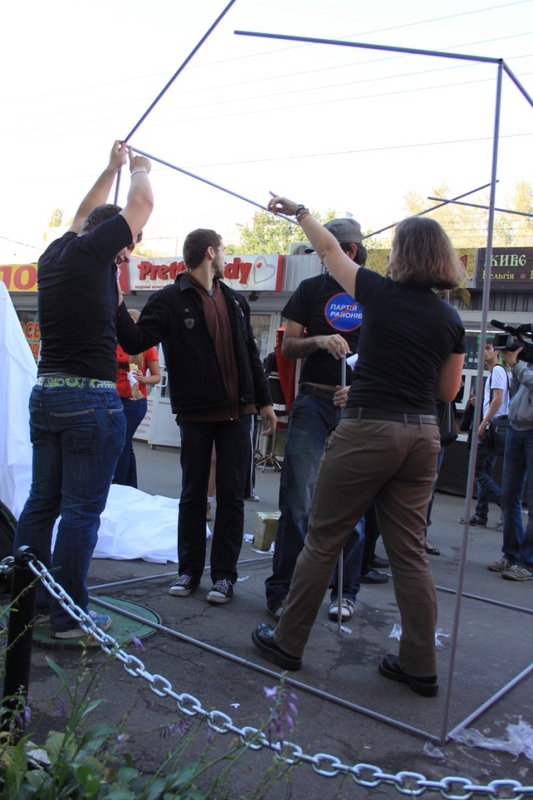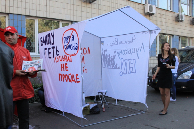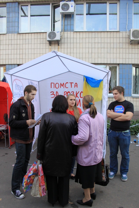 Це ніяк не вплинуло на роздачу листівок проти Партії регіонів та Максима Луцького, оскільки активісти відразу ж встановили з іншого боку метро, на ще більш людній вулиці.  Життя намету, який своїм незвичним виглядом і призначенням привертає увагу перехожих, триває вже три дні, і в результаті поширення листівок, за словами активістів кампанії “Помста за розкол країни”,  суттєво збільшилося.