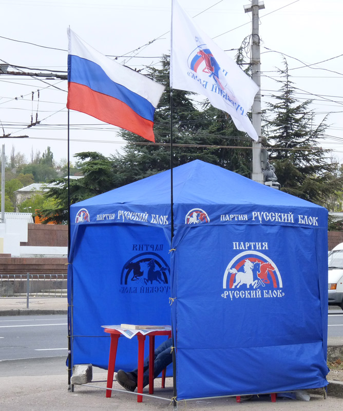 Серед численних антиукраїнських і антидержавних партій, які вільно створені і безперешкодно функціонують в Україні, а частина їх бере участь у виборах до Верховної Ради в 2012 році, «Русский блок» виділяється особливою агресією, до того ж дозволяючи собі проводити передвиборну агітацію під російськими триколорами. 4 серпня цього року голова партії Геннадій Басов заявив на з’їзді, що українській «державі необхідна партія, яка представлятиме реальні інтереси Русского міра». А далі перерахував всі заходи, які треба провести для того, щоб замінити всі українські цінності в Україні на російські.