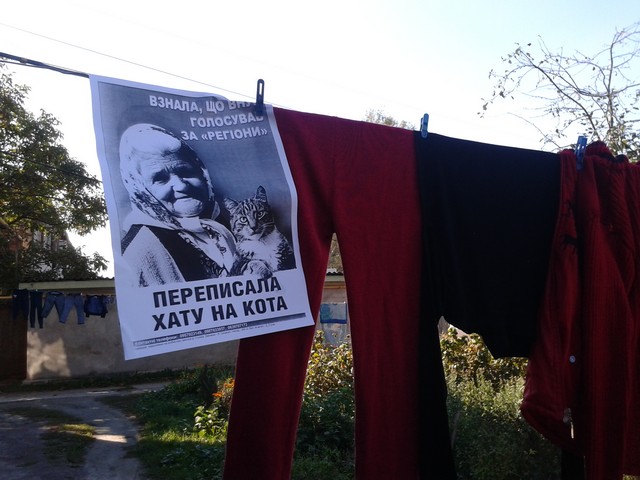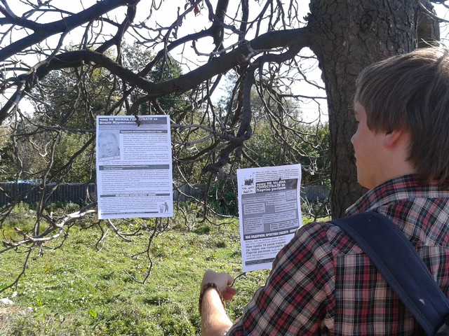 Перша поїздка відбулась у суботу, 29 вересня. Активісти “Помсти за розкол країни” поширили у виборчому окрузі № 66 на Житомирщині листівки з інформацією, чому не можна голосувати за Віталія Журавського, який є автором сумнозвісного закону про наклеп і балотується там від Партії регіонів.