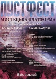 3-4 листопада спорожнілий Грушевського 4-Б захоплять зграї митців. Тут ви побачите все те чим можна і треба насичувати наші вулиці, будинки і свій спраглий розум. Так що запрошуємо всіх наповнювати і наповнюватися. Чекаємо і хочемо дивувати. Якщо лишилися вагання, програма от: