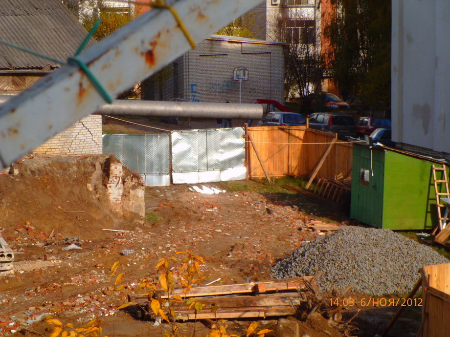 08 жовтня 2012 року було встановлено нові наслідки злочинних дій: З боку проведення земляних робіт забудовниками біля першого під’їзду біля сходів виявлена тріщина по переметру 9-поверхового будинку зсув грунту; а у квартирі №10 пенсіонера Збройних Сил України Колитка Б.Ф. у ванній кімнаті та балконі злетіло 5 кв.м облицювальної плитки, у туалетній кімнаті, встановлено факт відходу плитки від стіни у результаті деформації стіни.