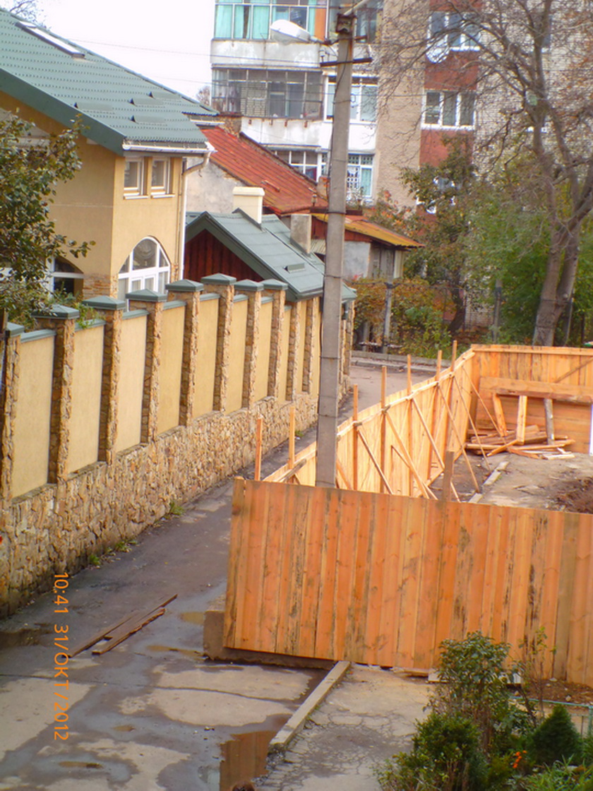 01 жовтня 2012 року на забудовну територію прибула бригада з важкою інженерною технікою – бульдозером і краном. Почалися злочинні дії щодо викрадення серед білого дня прибудинкової території та самочинної ліквідації залізобетонної підпорної стіни будинку №16 (Околична), яка була споруджена військовими будівельниками у 1990 році, з метою утримання зсуву грунтів на прибудинкову дорогу та дев’типоверхову будівлю по вулиці Околичній,16. Частина залишених блоків була використана під загорожу будівельного майданчику на ділянці прибудинкової території військового містечка №385 до якого відноситься будинок №16.