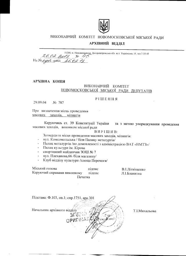 У Новомосковську виконавчий комітет узяв та й визначив “місця проведення масових заходів”, іншими словами – обмежив реалізацію права на мирні зібрання за територією (на те, що недотримання цього рішення не може на практиці бути підставою обмеження права, ми звісно, сподіваємося, але менше з тим):