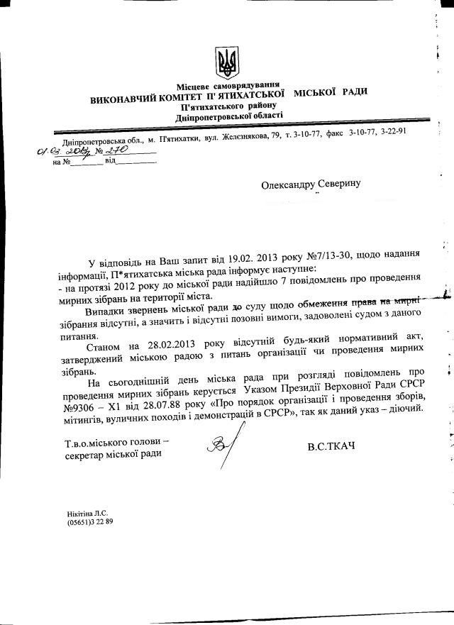 І якщо, наприклад, у місті з симпатичною назвою Вільногірськ все ніби добре – нема ані свавільно прийнятого “самоврядувальниками” місцевого “положення” чи то “порядку” реалізації права на мирні зібрання, ані практики застосування т.зв. “указу президії ВР СРСР” 1988 року з тих питань, якому давно місце там саме, де і самому СРСР, то в інших містах не все так гладко.