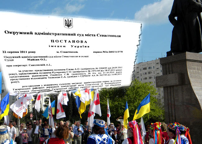 Окружний адміністративний суд міста Севастополя, розглянувши позов Гагарінськой районної адміністрації, заборонив місцевій партійній організації «Всеукраїнського об’єднання «Батьківщина» провести урочистий мітинг присвячений двадцятій річниці Незалежності України і покласти квіти до пам’ятника Т. Шевченку.