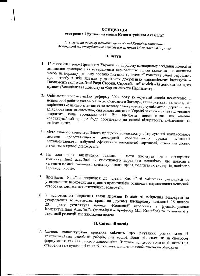 Попри певні “технічні складнощі”3, вдалося отримати не лише проект Концепції створення та функціонування Конституційної Асамблеї, підготовлений “конкуруючою” групою розробників – Комісією зі зміцнення демократії та утвердження верховенства права4, але і висновок Венеціанської комісії5 щодо цього проекту
